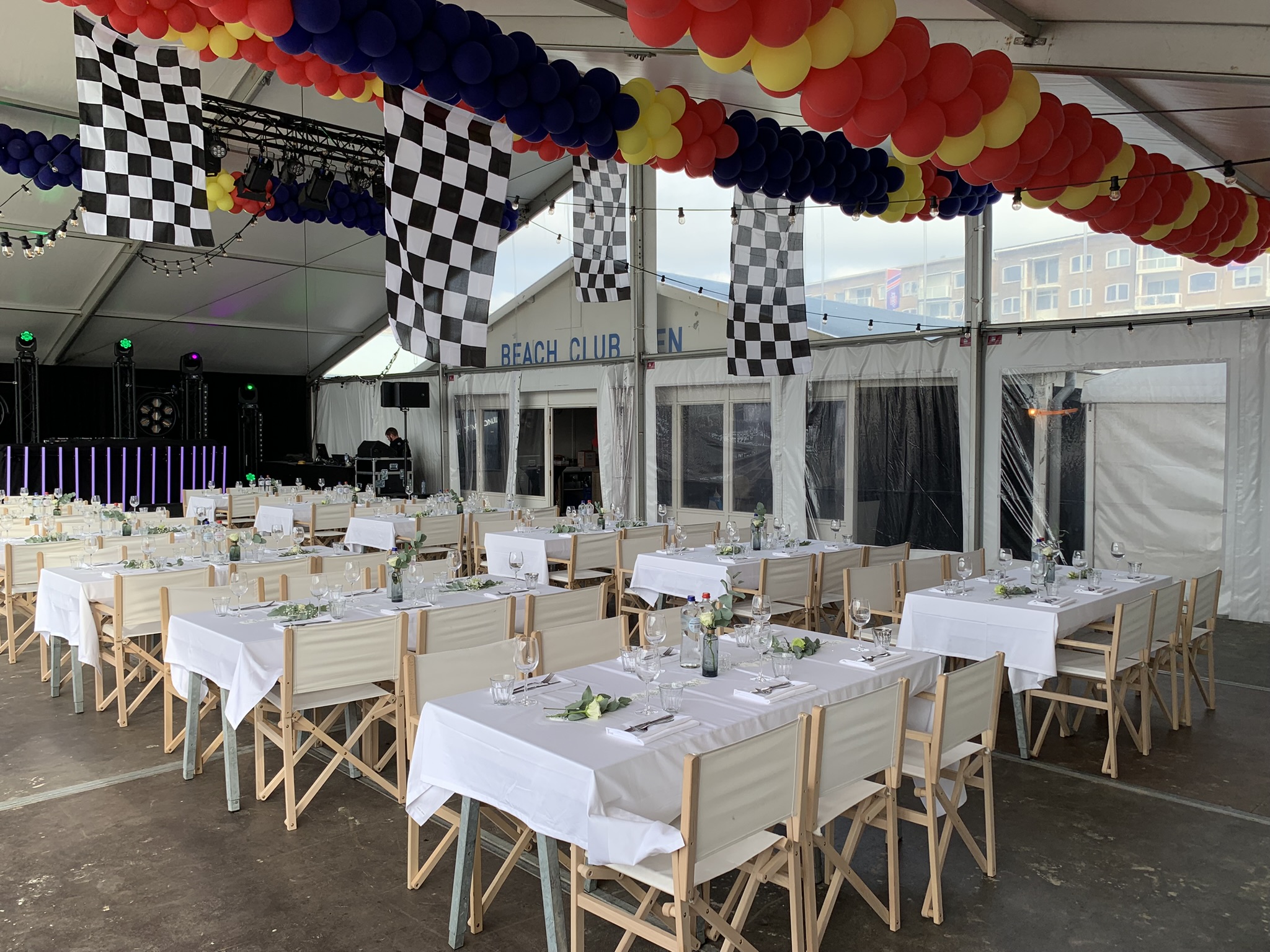 Tijdens het Formule 1-weekend in Zandvoort realiseerden we voor onze opdrachtgever een volledig ingericht hospitalitydomein op het strand – pal naast het circuit. Een unieke locatie waar gasten konden ontbijten, dineren én feesten, omringd door sfeer, comfort en spektakel.