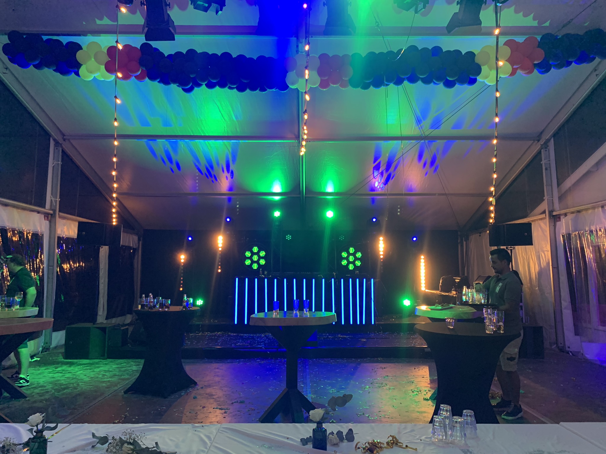 Gedurende het weekend verzorgden we het totale programma: van ontbijtservice tot avondentertainment. Onze technici waren permanent aanwezig voor de ondersteuning van licht, geluid en artiesten. We creëerden een comfortabele backstage voor omkleden, voorbereiding en technische regie.